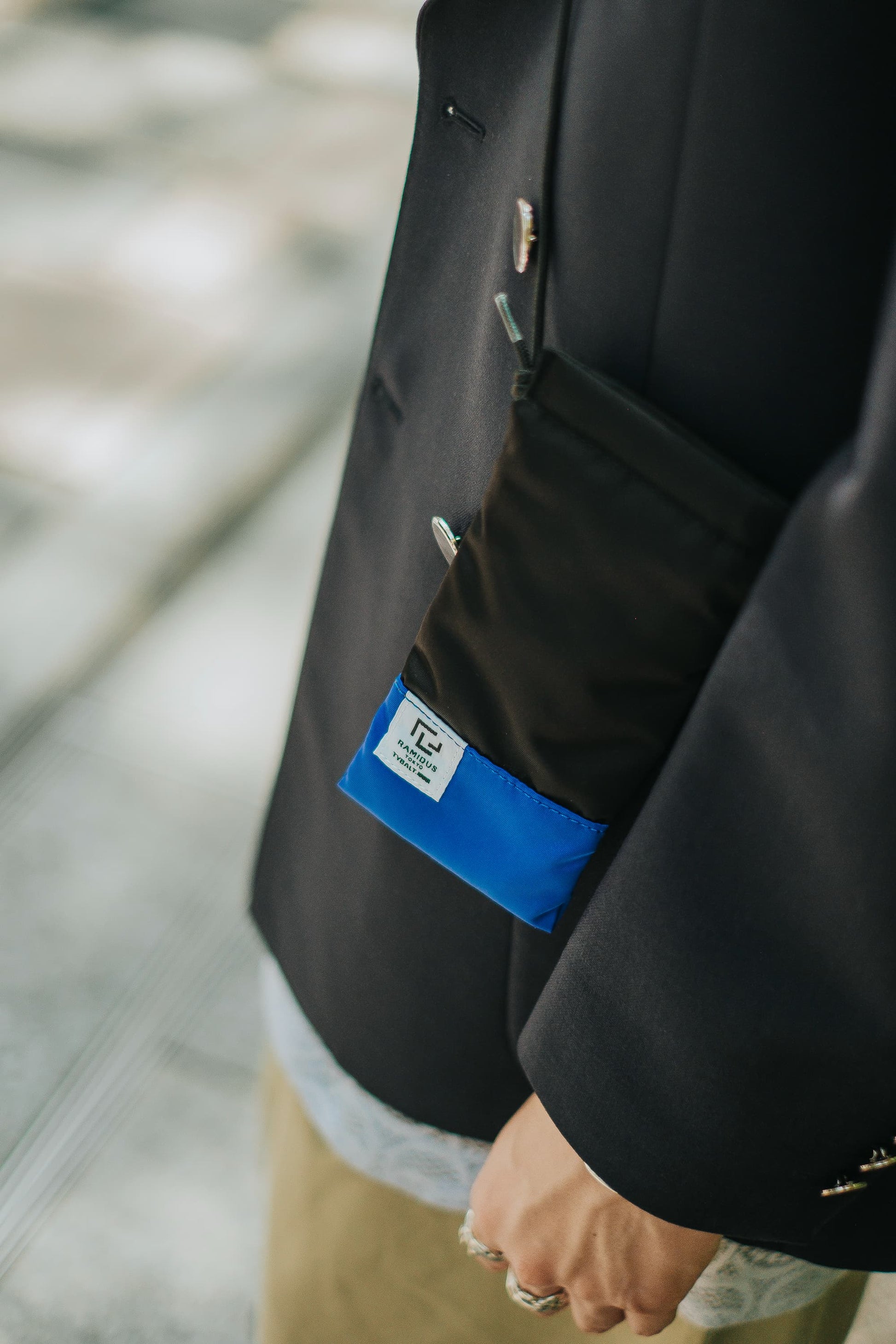 高級感のあるナイロンでカラーを切り替えたBLACK / BLUE。